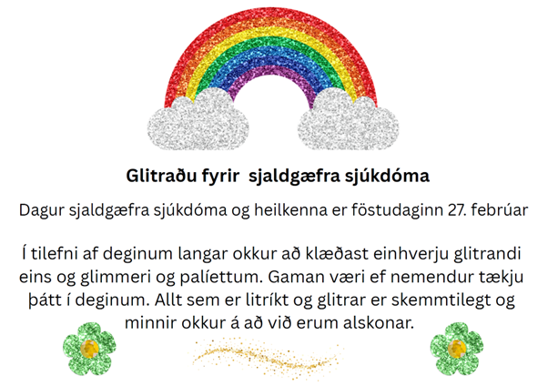 eins og glimmeri og palíettum. Gaman væri ef nemendur tækju