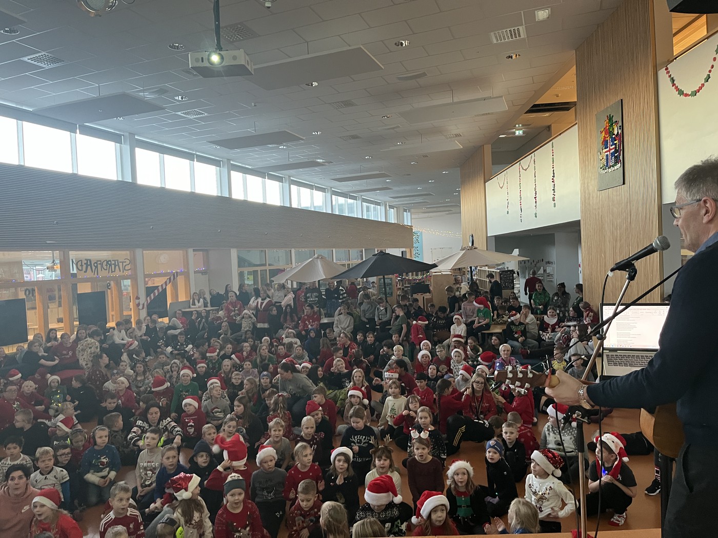 Eftir helgileik fórum við inn í fallega skreytt íþróttahúsið þar sem við tók jólaball og heimsókn jólasveina. Síðan var farið upp á svæði og átt góða stund með kennurum og jólasveinum, Allt gekk ljómandi vel þennan dag